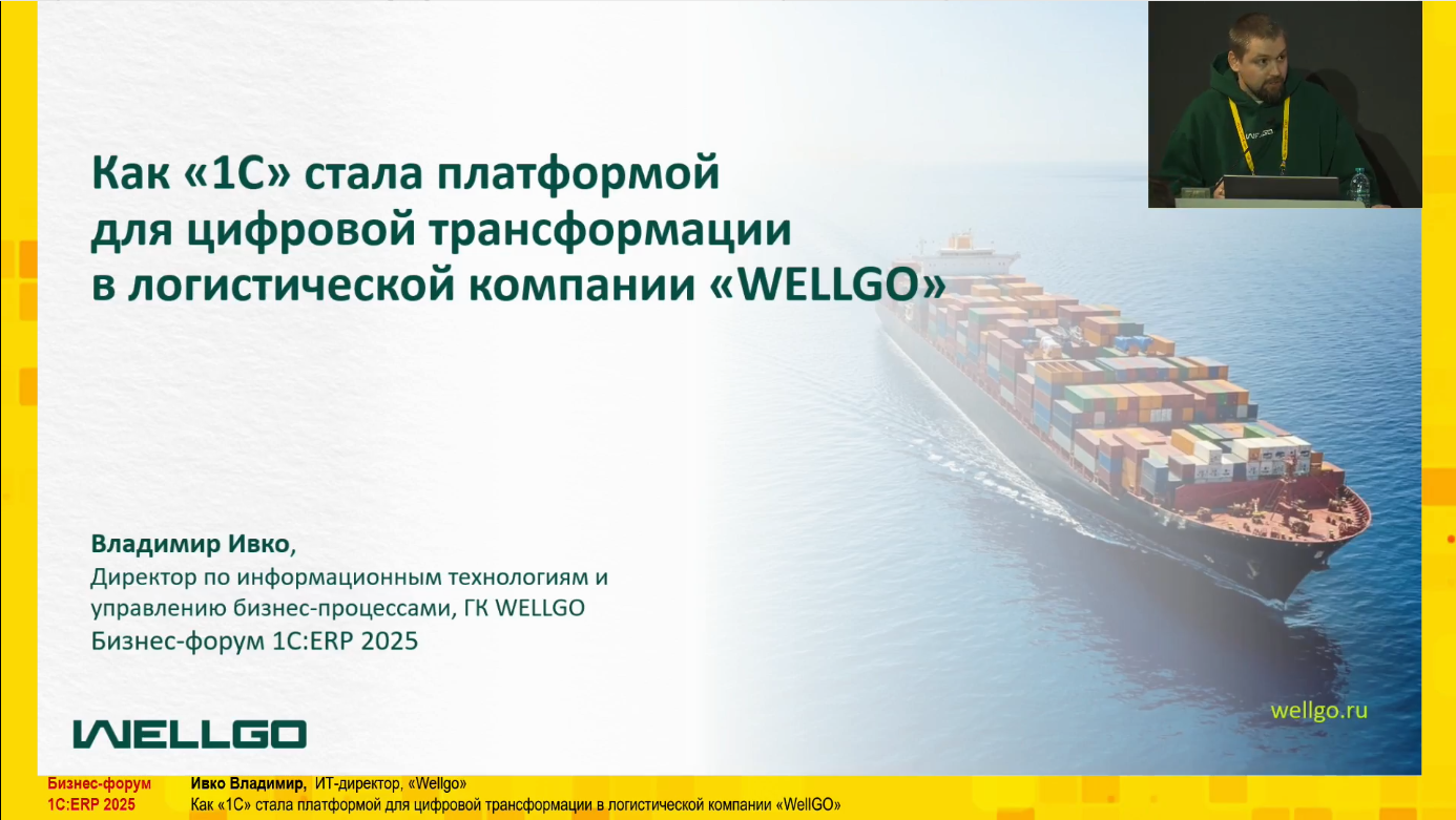Vladimir Ivko , the company's Director of Information Technology and Business Process Management, spoke at the event. In his presentation, "How 1C Became a Digital Transformation Platform for WELLGO's Transport Logistics," he detailed the company's journey from fragmented accounting systems to the creation of a unified digital ecosystem for logistics capital management.
